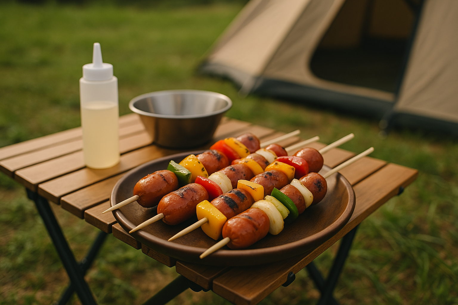 캠핑 가기 전 미리 소시지를 데쳐가거나, 토스터만 챙기면 바로 조리할 수 있어요.